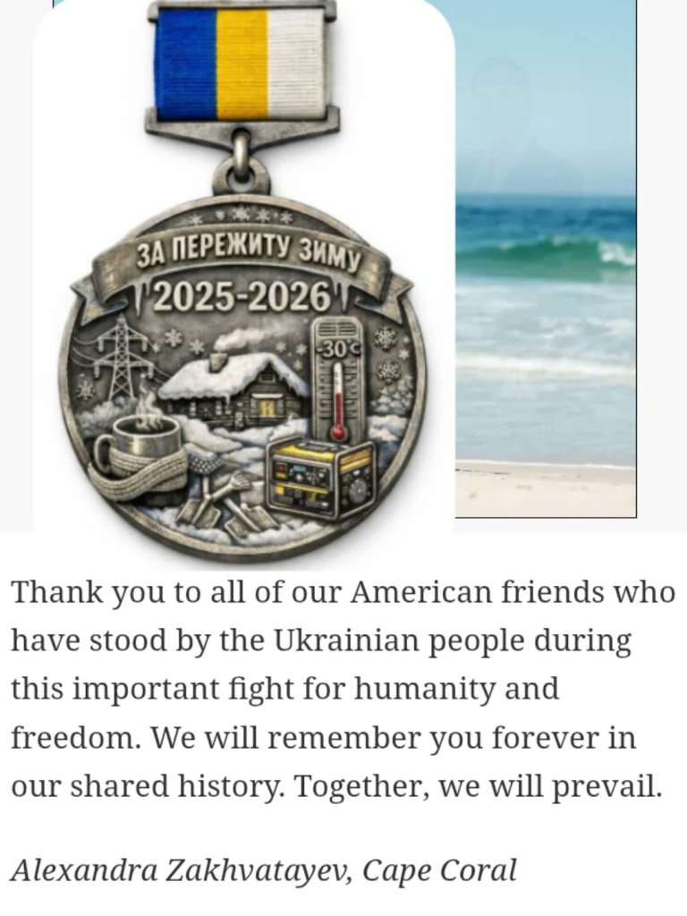 Від навчання дітей-біженців і дорослих, до прийняття українських біженців війни у власному домі; від злетів і падінь, коли я стояла пліч-о-пліч із ветеранами війни, зокрема важкопораненими, до того, як мене підривали й атакували політичні опоненти та російські пропагандисти; до того, як я сама пережила небезпеку під російськими бомбами… Я вирішила жити так, щоб знову і знову бути поруч із нашою спільнотою та продовжувати свою відданість разом із багатьма моїми друзями — боротися за оборонний союз США та України, прокладати шляхи вперед аж до самого завершення, поки справу не буде зроблено. Мені не потрібно було бути у війську, щоб навчитися в наших американських і українських братів і сестер, які водночас протистоять тиранічним режимам Ірану та Росії на кількох активних фронтах.