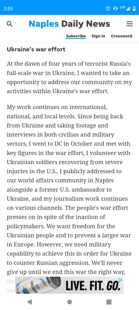 As always, I welcome you to follow my work on my social media pages, as well as reporting on my website http://www.kyivfreepress.com which was launched this past summer in Kyiv during Ukraine’s summer counteroffensive. Likewise, you can always stay posted in our local Breeze network as I will always update my community on our progress toward a just peace.